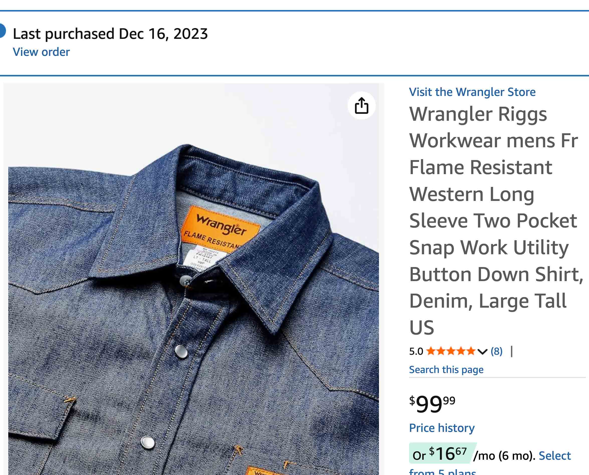 I looked on Amazon to the order I placed for that Wrangler FR shirt, and found that it now costs an entire Benjamin.